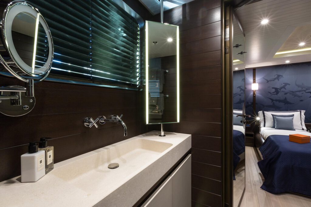 The project is defined by a warm and colourful atmosphere inspired by the sea, refined detailing, and a well-organized layout suited for extended time at sea.